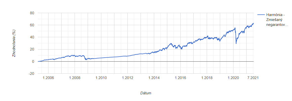 Sú kombináciou akciového a dlhopisového fondu, kde sa správca snaží o značnú eleminináciu rizika oproti riziku v indexovom fonde za cenu výnosu. Tento fond je vhodný pre vyváženého investora, ktorý znesie mierne riziko a očakáva konzistentnejší výnos bez veľkých poklesov hodnoty úspor. Nižšie v grafe je výnosová krivka NN Harmónia zmiešaného negarantovaného fondu s priemerným ročným výnosom 3,3% p.a.