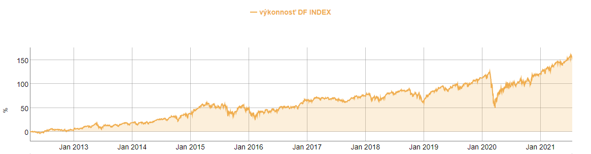 Všetky 3 vyššie spomenuté DSS sa predbiehajú o prvenstvo vo výkone fondu, ale nakoľko majú identický benchmark, investujú veľmi podobne a aj ich priemerná ročná výkonnosť je podobná okolo 10,7% p.a. Nižšie je znázornená výnosová krivka VUB Generali indexový negarantovaný fond s vysokou volatilititou, ktorá počas prvého kola pandémie vymazala zisky fondu za predchádzajúce 3 roky a je aktuálne na nových maximách.